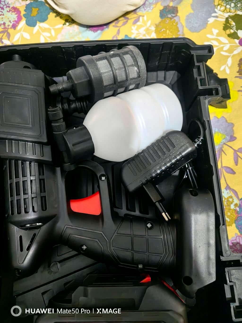 It’s battery-powered and portable, so you can clean anywhere without needing a fixed water hose or electricity — battery included
