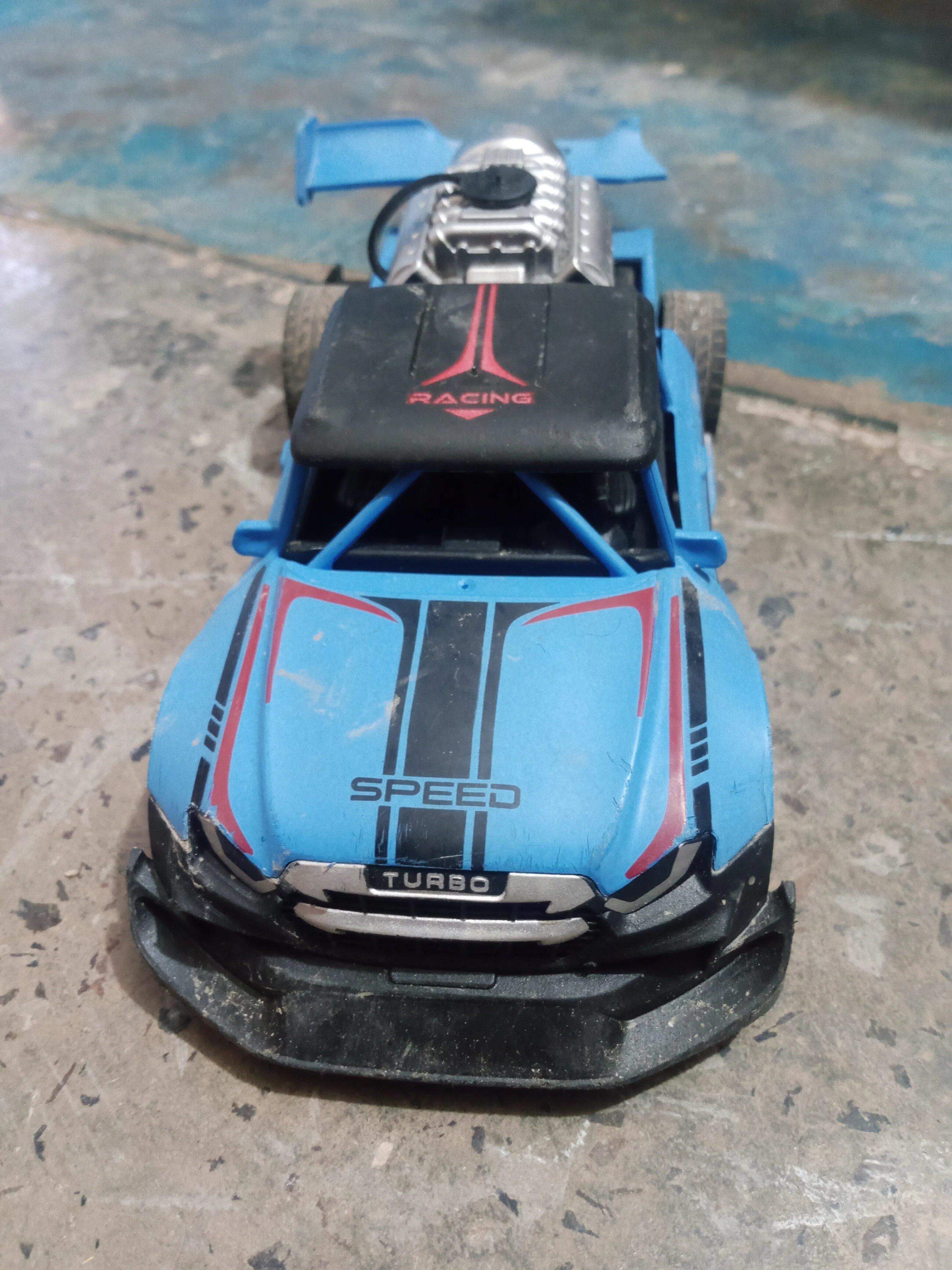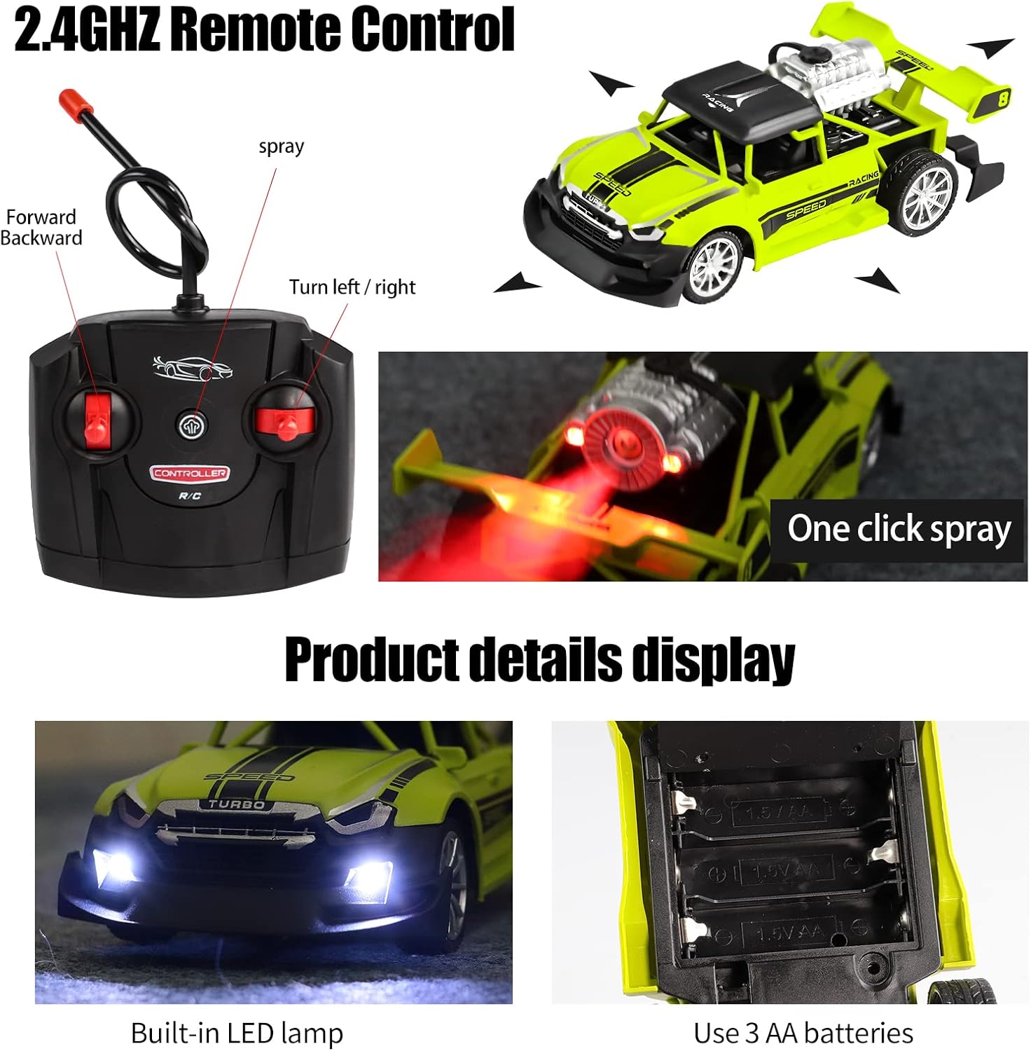 Bring your races to life with this dynamic "Speedy" remote-controlled car that features realistic LED headlights and a unique mist spray effect