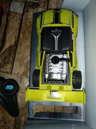 Experience the thrill of the track with this lime-green RC racer featuring a mounted launcher and full remote control for high-energy play