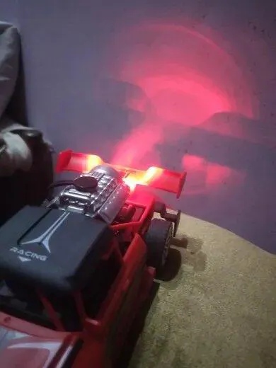 Watch the competition fade away as this red stunt truck releases a realistic blue mist trail from its rear exhaust for a dramatic racing experience