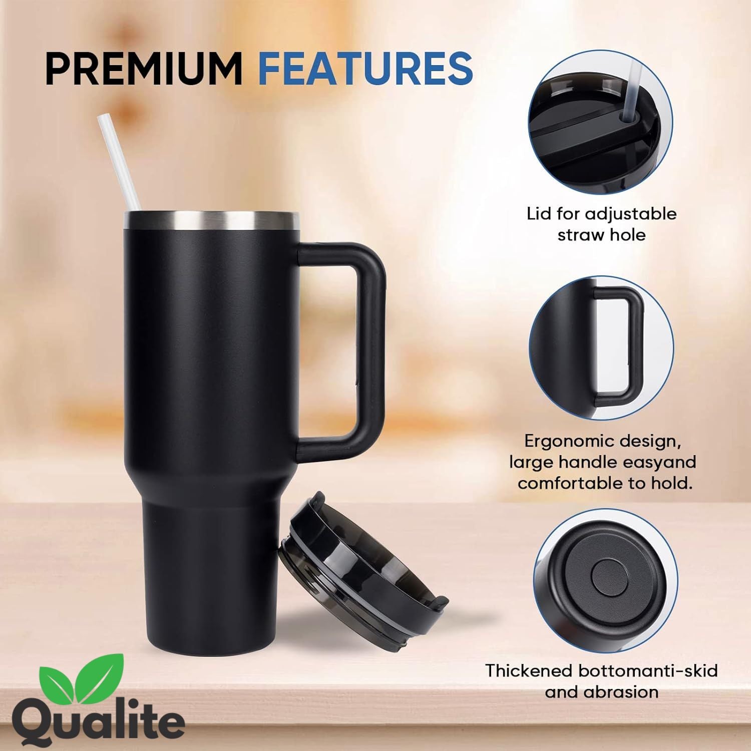 The tumbler mugs come equipped with both a straw and an ergonomic handle, ensuring easy sipping whether you're driving, working, or relaxing. This thoughtful design allows for quick access to your drink while minimizing spills. Plus, with its 2-in-1 airtight lid, you can confidently carry this tumbler in your bag or place it in your car without worrying about leaks or messes.